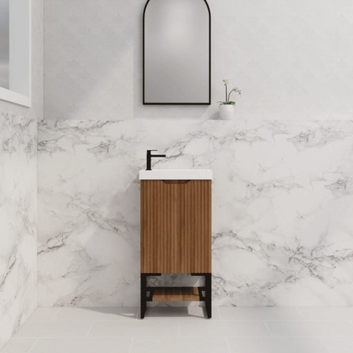 450x250x830mm ABS Vienna Solid Timber Flute Freestanding One Door Mini Vanity With Poly Marble top