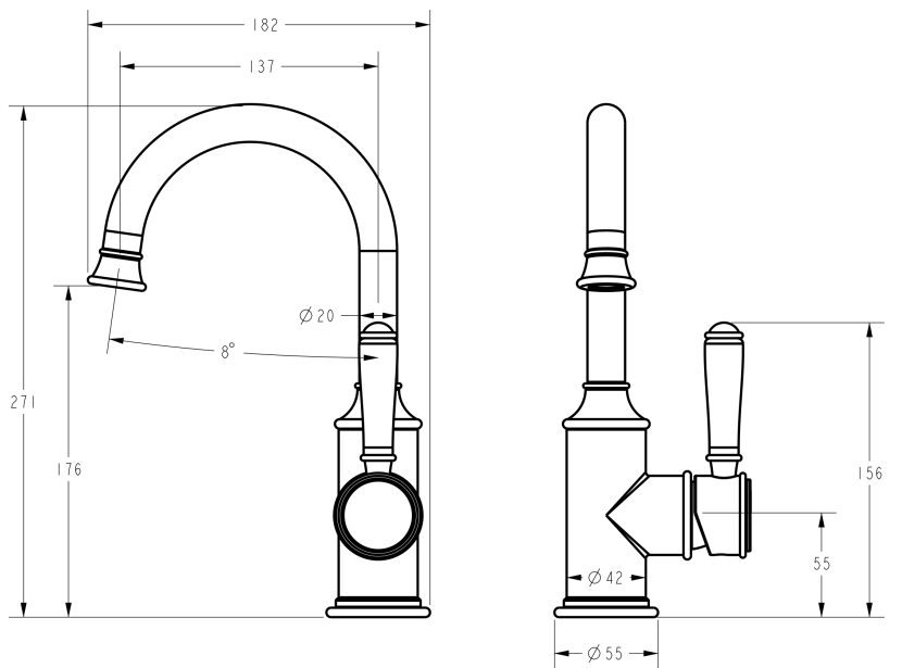 Clasico Gooseneck Basin Mixer Ceramic Handle in Brushed Nickel