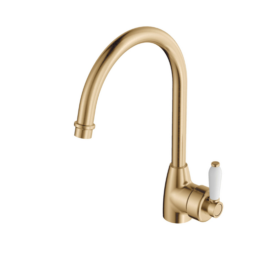 Fienza Eleanor Mordern Vintage Urban Brass Solid Brass With Ceramic Handle Gooseneck Sink Mixer