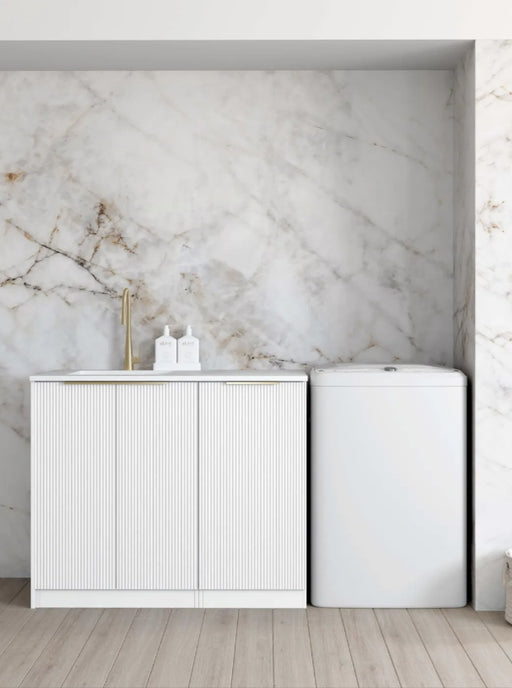 1060*600*900mm Otti Bondi White Fluted Base Laundry Cabinet With Stone Top And Sink