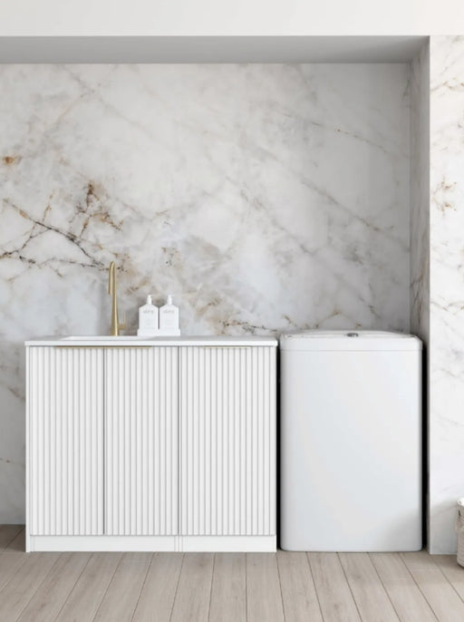 1060*600*900mm Otti Noosa Matt White Fluted Base Laundry Cabinet With Stone Top And Sink