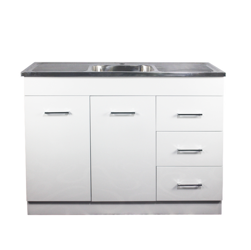 SKU:POS-KM1248["1000-1200mm","Drop In Mount","Kitchenette","Poseidon","Sinks","Square","Stainless Steel","White"]falseOriginal price $819.00 - Original price $819.00Original price $819.00$819.00$819.00 - $819.00Current price $819.00| /In stockPackage includes:1x laundry tubFeatures:Size: 1180*485*900mmCabinet material: PVCSink material: 304 Stainless SteelSoft closing doors and ONLY rig...