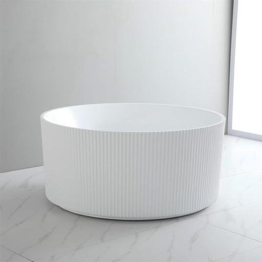 1280*1280*595mm POS Como Groove Fluted Matt/Gloss White Acrylic Round Freestanding Bath