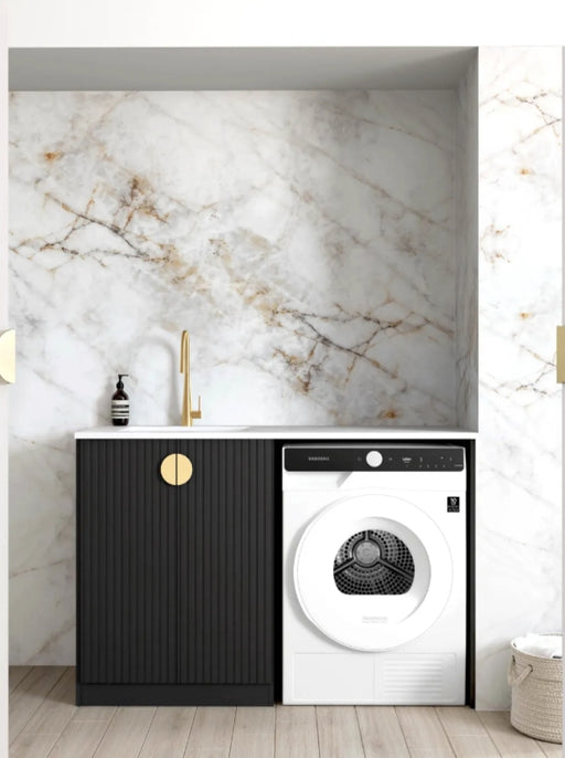 1300*600*900mm Otti Marlo Matt Black Fluted Base Laundry Cabinet With Stone Top And Sink