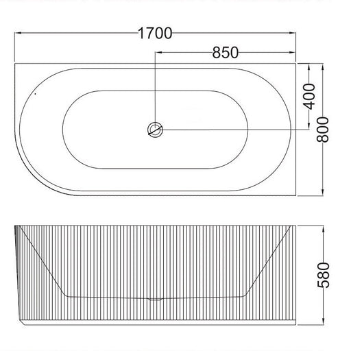 1700*800*580mm Infinity BELUS Gloss White Oval Acrylic Fluted Back To Wall Bathtub