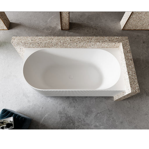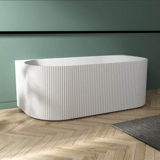 1500/1700mm ABS Roma Riva Gloss/Matt White Oval Sharp Flute Profile Back to Wall Bathtub