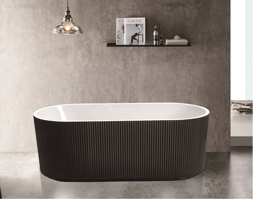 1500-1700*800*580mm Poseidon Brighton Matt Black Oval Acrylic Fluted Back To Wall Bathtub