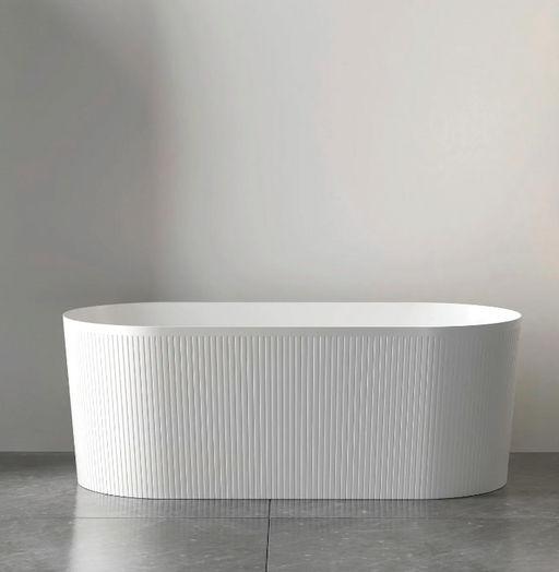 1500-1700*750*590mm Sunny 715 Gloss White/Matt White Oval Acrylic Fluted Freestanding Bathtub