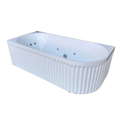 1500-1700*750mm Broadway Mallorca Fluted 10 Jets Matt White/Gloss White/Matt Black Back To Wall Spa Bathtub