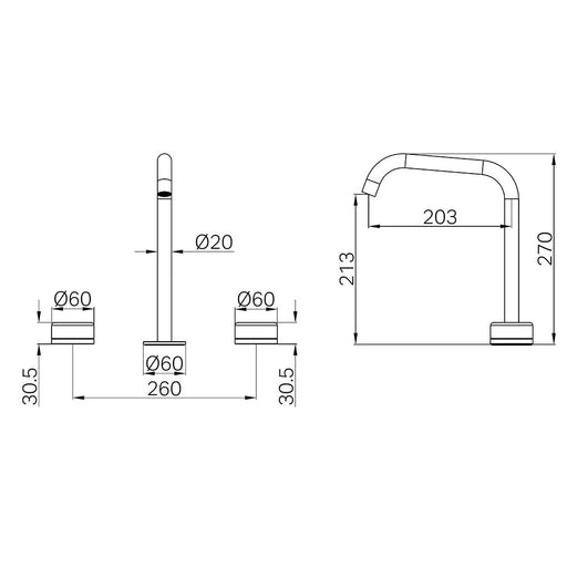 Kirra Fixed Spout Basin Three-Piece Set Chrome Solid Brass