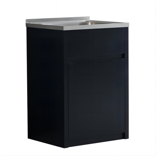 597*495*890mm 45 Litres 304 Stainless Steel Sink With PVC Matt Black Laundry Tub Cabinet