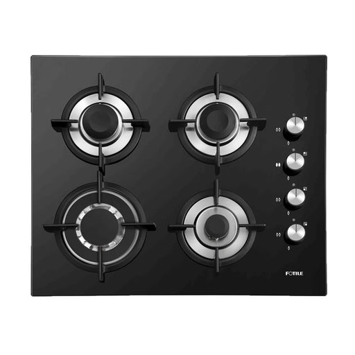 600mm Fotile Matt Black 4 Burner Tempered Glass Dual Fire Heating Natural Gas Cooktop