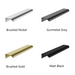 - Handles: Optional slim metal handles in four contemporary finishes.