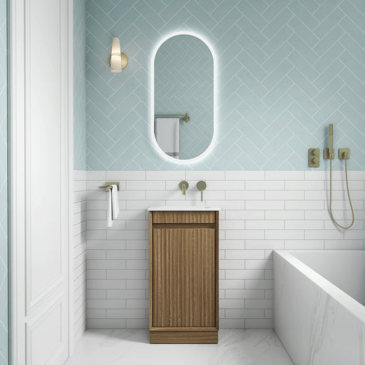 450*300*840mm Aulic Ravia Harvest Oak Plywood Fluted Mini Freestanding Vanity
