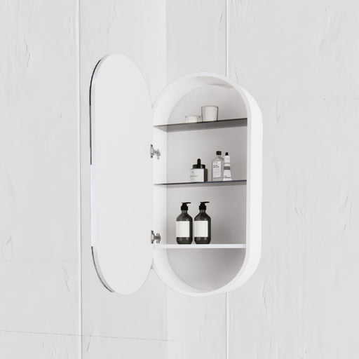 SKU:OTTI-SOV9045["900mm","900mm Length","900mmLength","Matt White","Mirrors","Otti","Oval","Pill\u0026Oval","Shaving Cabinet","ShavingCabinet","White"]falseOriginal price $439.00 - Original price $439.00Original price $439.00$439.00$439.00 - $439.00Current price $439.00| /In stockNOOSA MATTE WHITE SHAVING CABINET Door: 900x450mm Pill Shape Mirror Cabinet: 480x428x116mm Construction: 2 pac Polyurethane/PlywoodMounting: Wall M...