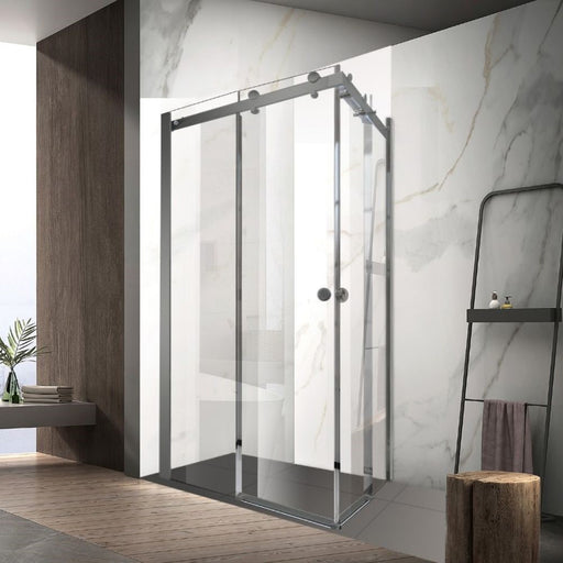 900-1800*2000mm SUN 8mm Glass Double Sliding L Shape Frameless Chrome Fittings Shower Screens