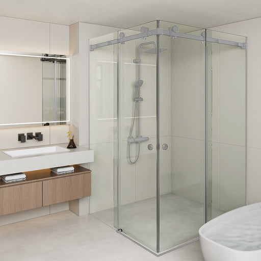 1180-2000x2000mm COV Wall to Wall Sliding Door Frameless Chrome Stainless Steel Square Handle 10mm Glass Shower Screens