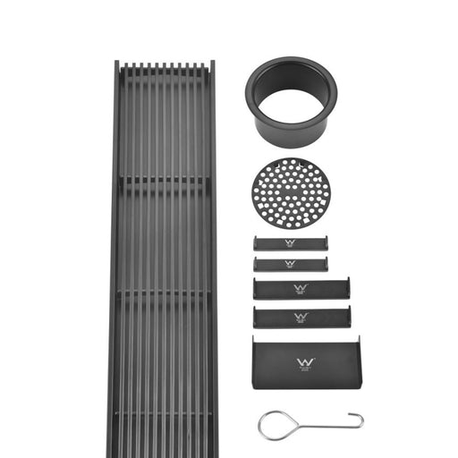 600-1800*100mm Somer Matte Black Linear Grill Floor Waste Grill Drain (80mm Outlet)