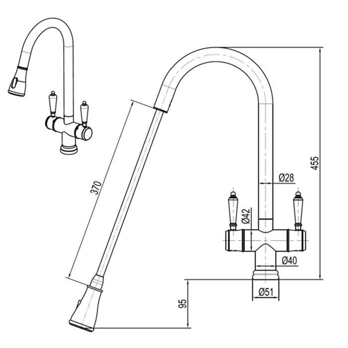Suprema XQUISITE XFIT Satin/Chrome/Gun Metal 316 Stainless Steel Gooseneck Tapware