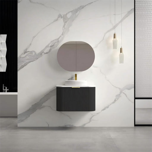 600-1800*500*470mm POS CETO Avalon PVC Constructed Matte Black Curve Fluted Bathroom Cabinet Wall Hung Vanity