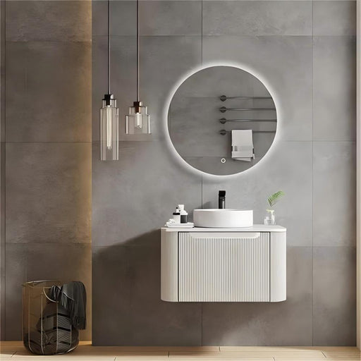 750-1800*460*350mm Aulic Petra Matte White Wall Hung Curving V Groove Vanity and German Accessories