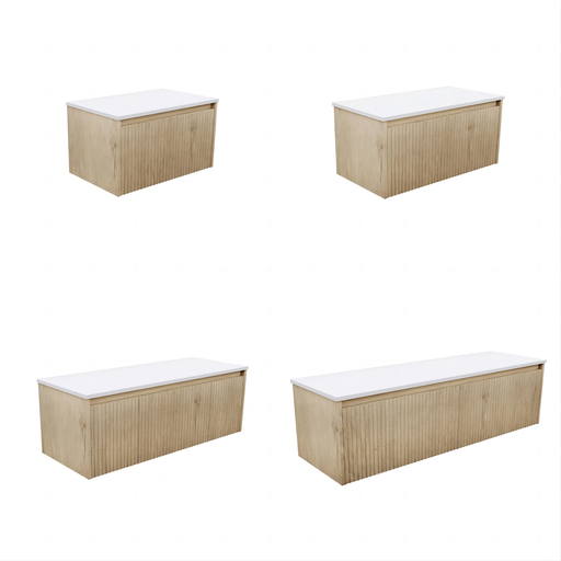 600/750/900/1200/1500*455*390mm Mercio Rhea Natural Oak Fluted Wall-Hung Cabinet