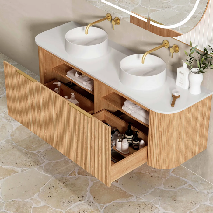 600-1800*460*450mm Bondi Woodland Oak Curve Bar Handle Cabinet Wall Hung Vanity