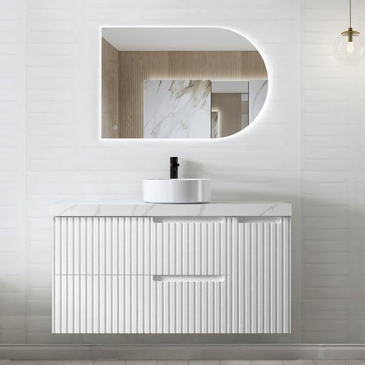 900*460*450mm OTTI Bondi Stain White High Moisture Resistant Plywood Curve Fluted Bathroom Cabinet Wall Hung Vanity